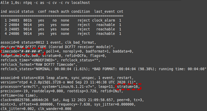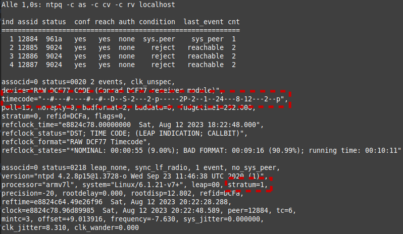stratum 1 stratum 16 Interne Parameter des NTP-Daemons mit Hinweisen über den Zustand.
