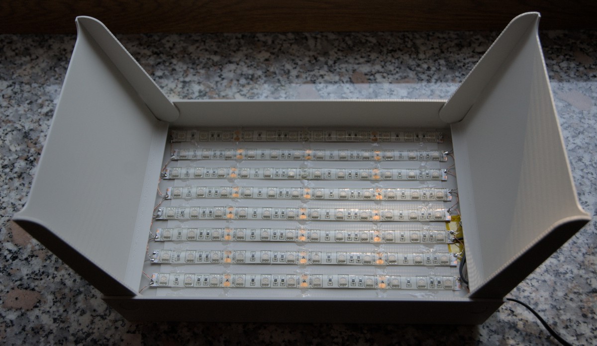 Die Belichtungskiste hat den Nachteil, dass die Platine oben liegt und man so nicht erkennen kann, ob die Ausrichtung der Vorlage passt. Daher habe ich mir eine Belichtungsbrücke gebaut.