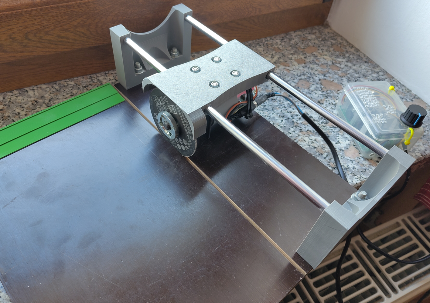 Zum Zurechtschneiden der Platine hab ich mir eine Art Kappsäge gebastelt.